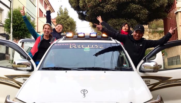 Rendez-vous bien matinal à 7h au bureau. Henry vient nous chercher à Sopocachi direction la Laguna Ajwani à 4615m d’altitude, que l’on atteint en 2 heures 30 de route. Il nous y dépose, nous récuperons nos pique-niques et le voila reparti avec l’équipement du campement de ce soir. Ça y est notre trek commence : les nanas Thaki partent à l’aventure!