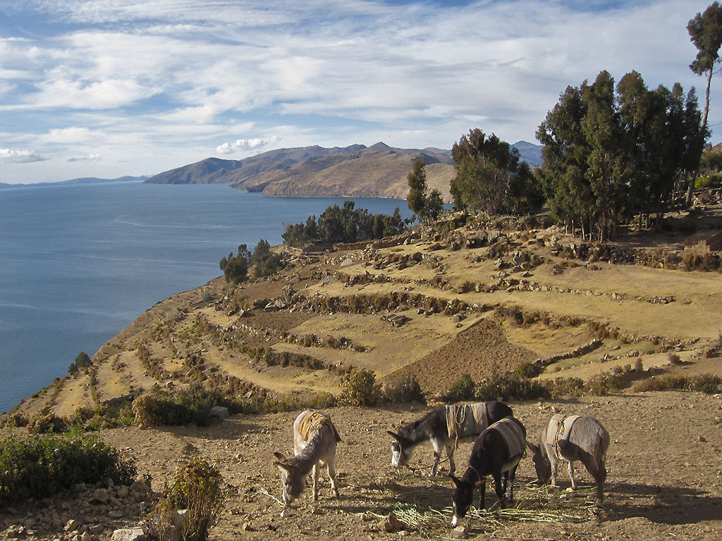 Départ le matin pour rejoindre le port de Copacabana puis navigation en bateau à moteur jusqu’à la grotte de Lourdes. Balade à pied sur la péninsule en longeant les berges du lac Titicaca pour rejoindre le village de Yampupata. Immersion dans une Bolivie rurale avec en toile de fond les pics enneigés de la cordillère Royale et les îles environnantes. Il est possible de faire un détour pour passer par l’authentique village de pierre Zampaya (4.000 m alt.).Traversée en bateau jusqu’à l'embarcadère de Yumani situé tout au sud de l’île du Soleil. Puis montée à pied pour rejoindre le logement situé sur les hauteurs de l´Ile du Soleil.